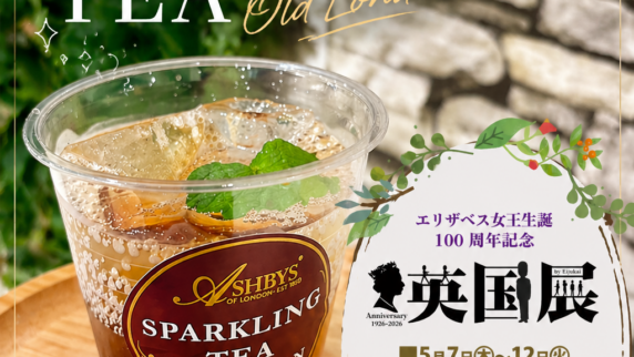福屋八丁堀英国展に出展します!!3年連続3回目の出展です!今回初テイクアウト紅茶『スパークリングティー』を実演販売いたします!!アシュビィズ1番人気のブレンド『オールドロンドンブレンド』に炭酸水を加えたさっぱり紅茶を是非お楽しみください♪